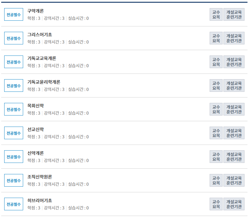 학점은행제 신학사에서 전공은 2가지로 분류됩니다.