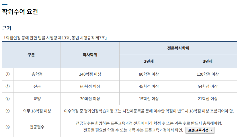 | 전문대졸 | 140학점 | 수업,전적대,자격증,독학사 | 1년 ~ 1년반 |