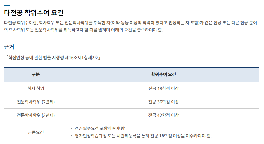 | 대졸 | 48학점 | 수업 | 1년 ~ 1년반 |